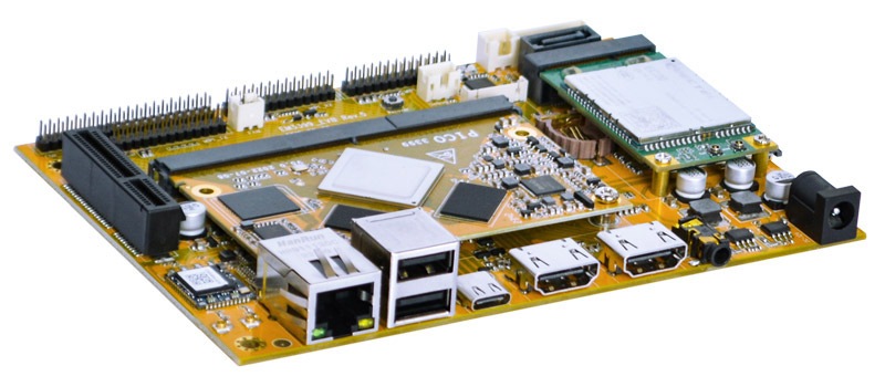 The platform is implemented with a PICO3399 system-on-module providing most of the functions and interfaces, and EM3399_C carrier board providing connectors and several additional functions.
