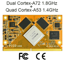 * 处理器: Rockchip RK3399. Dual-core Cortex-A72 @ 1.8GHz + Quad-core Cortex-A53 @ 1.4GHz