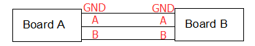 ❶ Connect the RS485 ports of Board A and B with the test line.