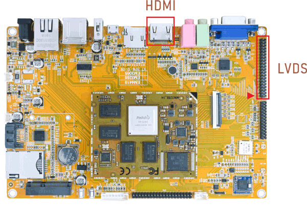 Connect the board and monitor, then start up. EM3288 supports Dual-screen display (HDMI/LVDS).