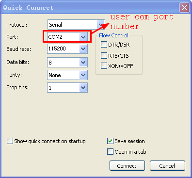 Step3, check Save session and click Connect.
