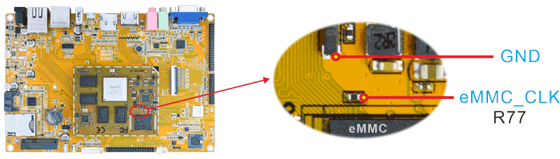 Step 1, Short circuit the signals eMMC_CLK and GND to enter Maskrom mode.